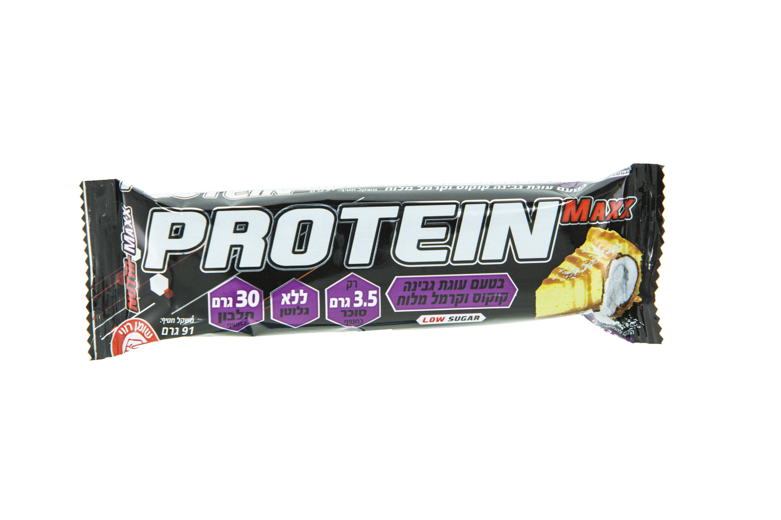 חטיף חלבון- פרוטאין מקס עוגת גבינה קוקוס וקרמל מלוח- 91 גרם